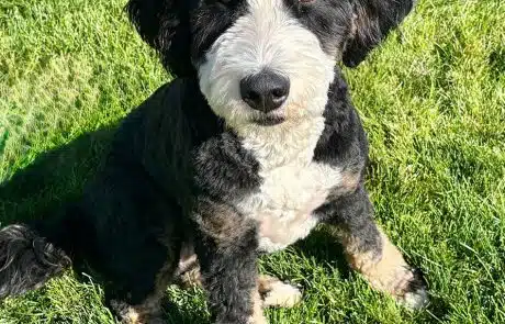Juno is an Ultra Bernedoodle with over 60% Bernese Mtn Dog in the mix. This gives her the BMD characteristics such as a straighter coat, stocky build and gentle sweet nature. She comes to us from Rocky Mtn Bernedoodles. We look forward to Juno’s puppies coming in 2026.